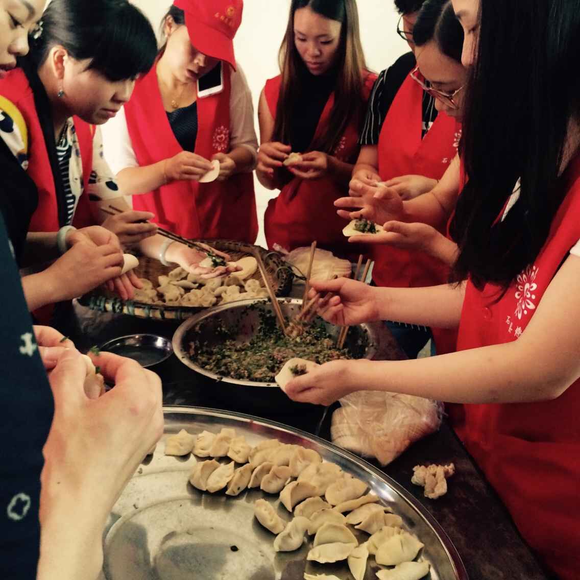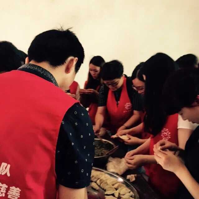 志愿者把饮料、水果、按摩器等慰问品送到老人手里。他们还提前买好饺子皮、韭菜、瘦肉等包饺子的材料,亲自为老人们包饺子。